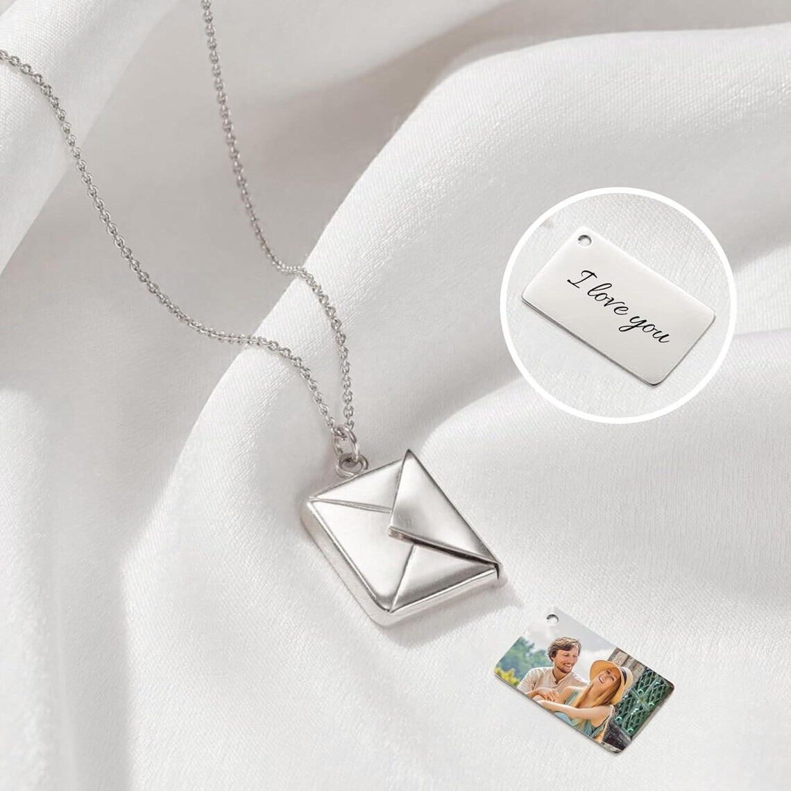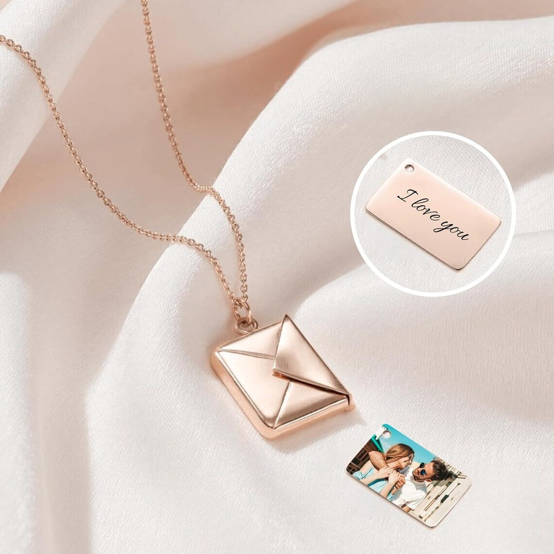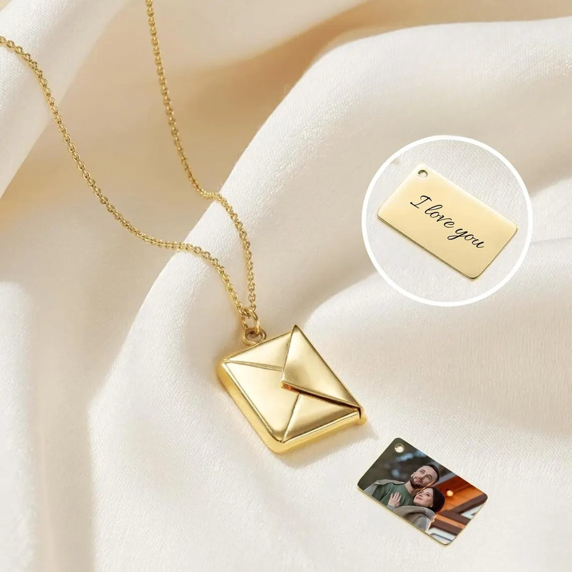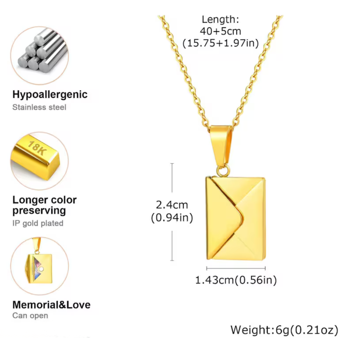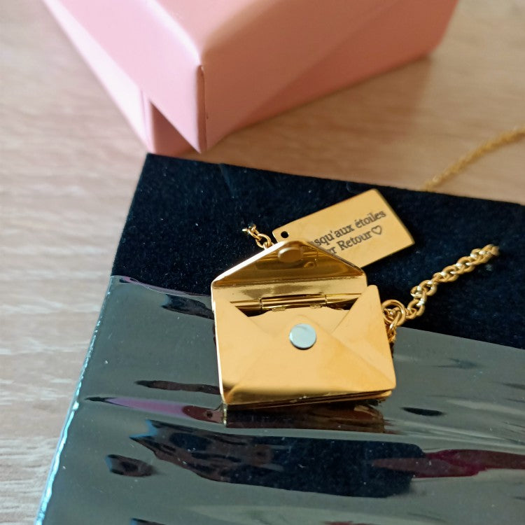 Gravez un prénom, une date ou un message secret à l’intérieur de son pendentif en forme d’enveloppe — un symbole d’amour, d’amitié ou de souvenir.